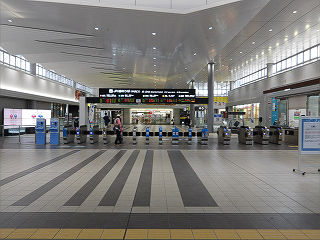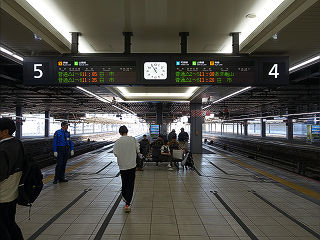 | 2階の中央改札口。中四国で最大の乗降客数を14台の改札機が捌いています。 | ホームは4面7線。こちらは島式の4、5番線。可部線が折り返しで使用します。 | |