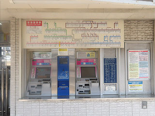 | 切符売場。タッチパネル式の券売機が2台。無人駅でインターホンが併設されています。 | 改札口。改札機は2台。発車案内や通行案内の類は設置されていません。 | |