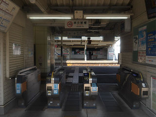 | 改札口。間口をいっぱいに使って改札機が3台設置されています。 | 山陽姫路方面。ホームは相対式2面2線。上屋は極一部に設置されるのみです。 | |