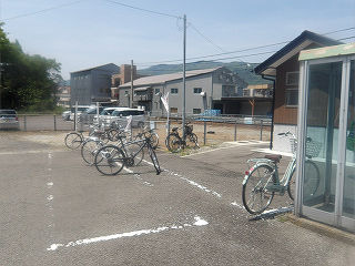| ホーム側から見た待合所。半オープン構造で、雨露をしのぐのがやっとです。 | 駅前の駐輪場...と言っても白線で区切られるのみで、上屋や側壁はありません。 | |