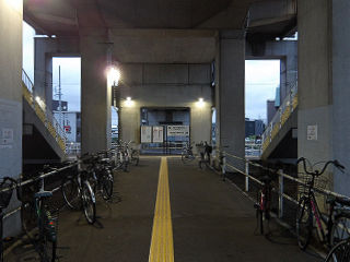 | 高架下の駐輪場。小田井同様、専用施設ではなく通路を勝手に使用しているだけのようです。 | 枇杷島方面。ホームは相対式2面2線。緩く左にカーブしています。 | |