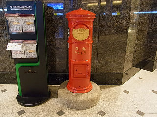 | 駅前に設置された丸ポストです。写真の木造駅舎は解体されましたが、改築後も丸ポストは健在です。 | 丸の内南口改札外の丸ポストです。東京駅開業100周年を記念して2014年に設置されました。 | |