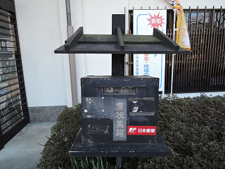 | 創業時の郵便ポスト「書状集箱」を模したポストです。東京、京都、大阪の三都市に加えて、東海道の宿場町に設置されていたのだとか。 | 正面にあたる東口に設置されたポスト。「大和路おもいで発信ポスト」と銘打ち、校倉造の蔵があしらわれています。 | |